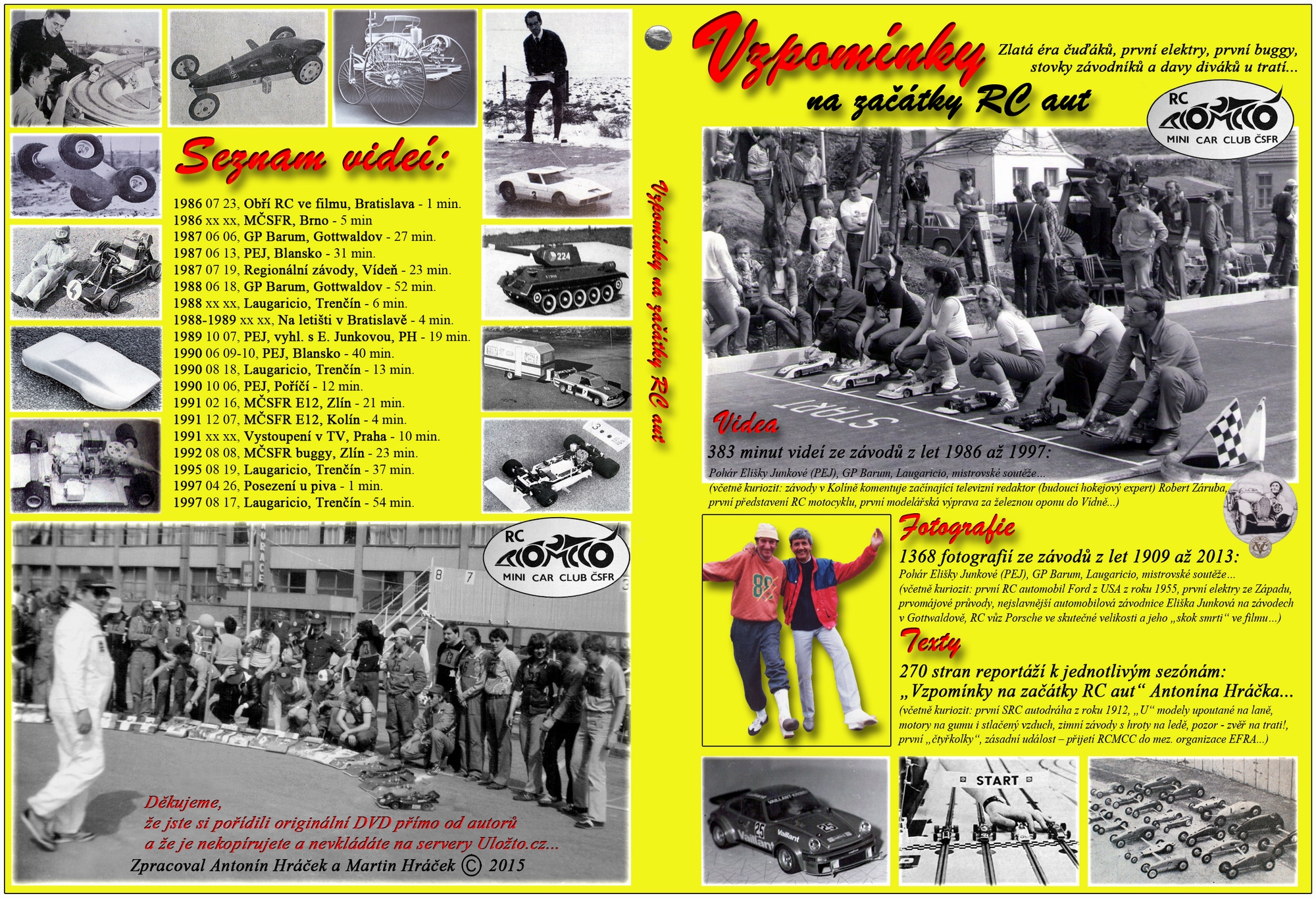 „Vzpomínky na začátky automodelářství ( U-modely, SRC, RC )“ od roku 1909 až 1993. DVD obsahuje 270 stran textů, 1368 fotografií a 6,5 hodin videí z různých závodů a akcí RC auto.