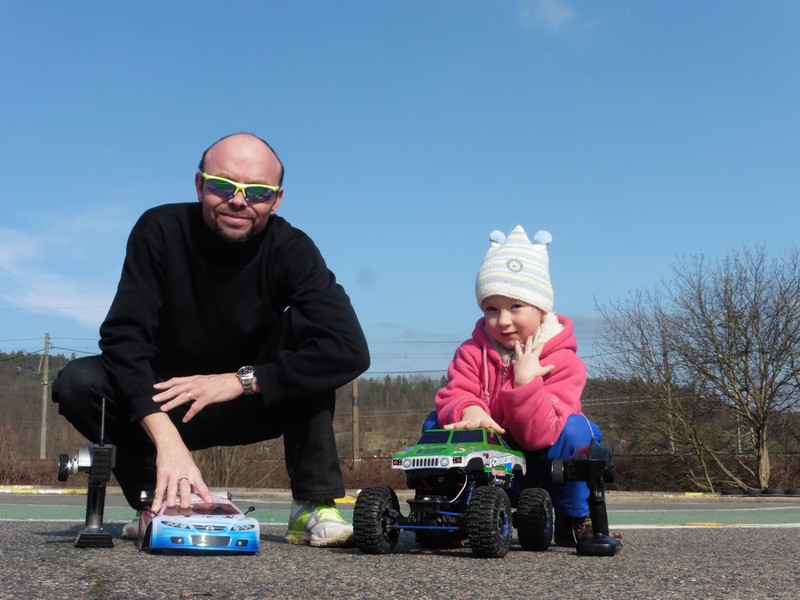Se mnou tam byla i dcera, která se nyní učí řídit model šplhače. A překvapila mne, že i když jede s autem proti sobě, zvládá orientaci. Takže zatímco ona si cvičila jízdní dovednosti, já jsem mohl kroužit se svým Yokomem BD7.
