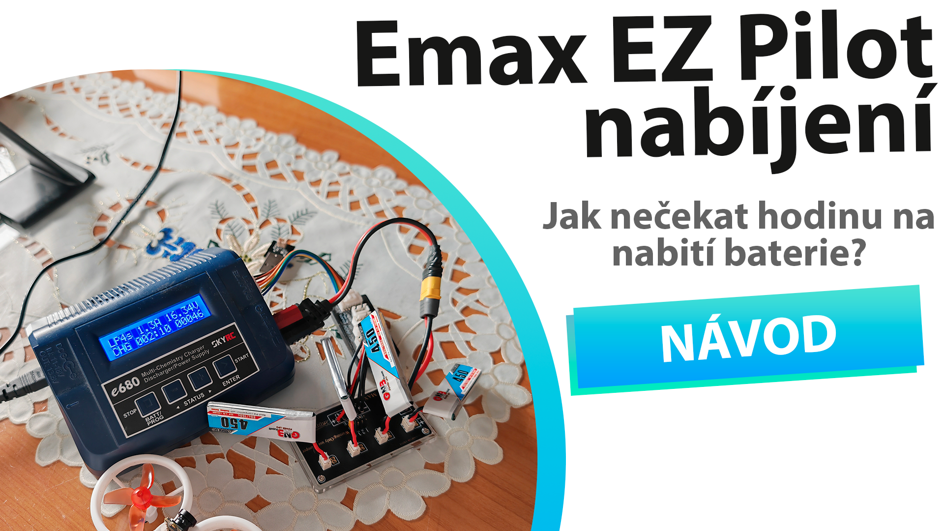 Koupíte set a v něm máte jednu baterii a USB nabíječ. Ten však nabíjí pomalu a nezáleží na rychlosti adaptéru. Takže ve finále letíte cca 5 minut a nabíjíte hodinu.