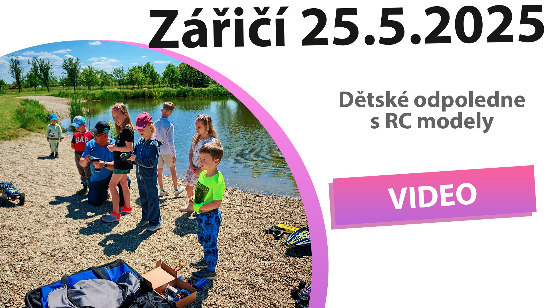 První prezentace RC modelů proběhla v obci Zářičí. Akci připravil kamarád Drahoš Vala (ITV Plus) se starostou obce. V krásném prostředí rybníku s pláží s kamínků si děti vyzkoušely RC modely lodí a offorad aut.